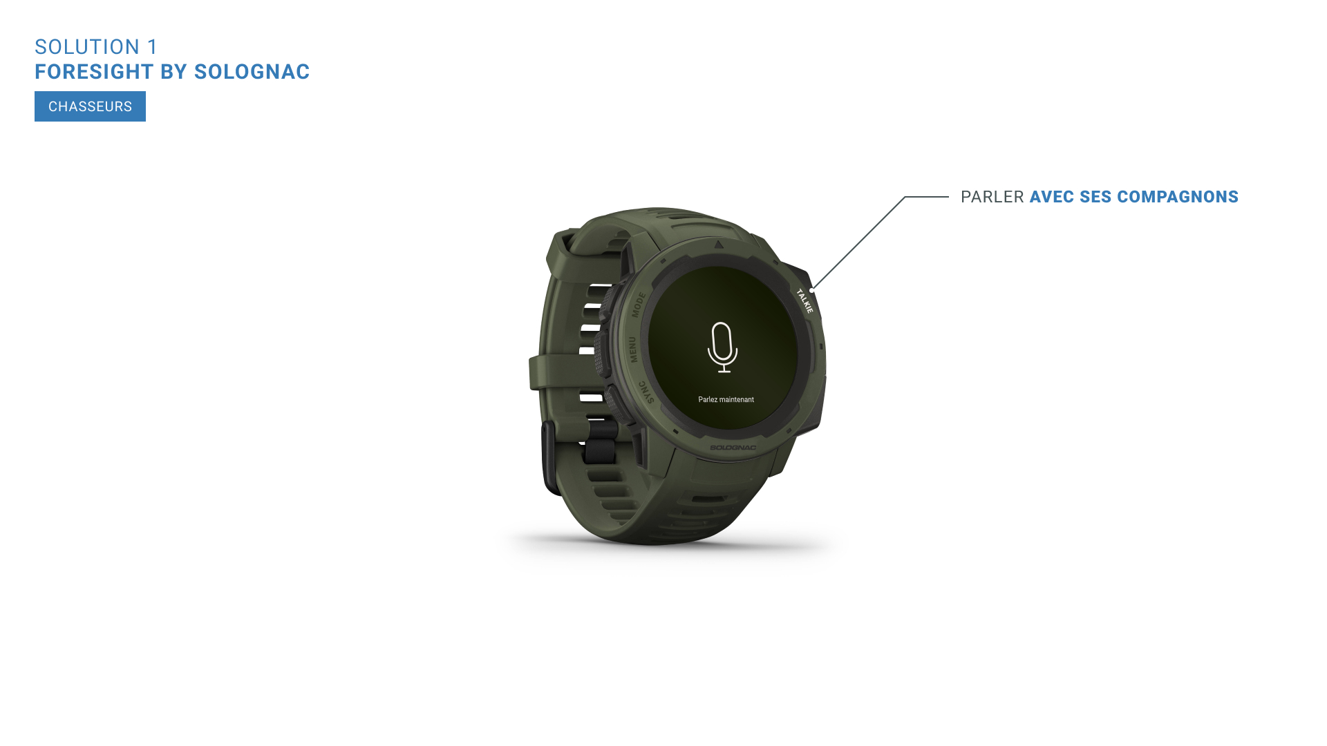 Après avoir mené des interviews qualitatives et quantitatives auprès des chasseurs et des promeneurs, ainsi que des recherches approfondies sur le sujet, nous avons imaginé une solution technologique pour apaiser ces conflits. La solution repose sur deux dispositifs complémentaires. Une montre connectée pour les chasseurs. Cette montre émet des vibrations en temps réel pour avertir les chasseurs lorsqu'un tir est jugé non conforme aux règles de sécurité, réduisant ainsi les risques d'incidents. Une application pour les promeneurs. L’application permet aux promeneurs de se déplacer en toute sérénité, en les informant en temps réel des éventuels dangers sur leur parcours (tir non sécurisé, présence de chasseurs), tout en leur proposant des itinéraires alternatifs pour éviter les zones de chasse. Cette solution vise à améliorer la sécurité et la coexistence pacifique entre les différents usagers de la forêt.